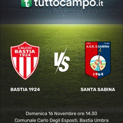 0 Bastia, BASTIA NEWS, Bastia Umbra, Calcio, Sport Bastia 1924 vs Santa Sabina: Scontro inedito all’11ª Giornata Pubblicato in: Pubblicato in: 14 Novembre 2025 Domenica 16 novembre, alle ore 14:30, lo Stadio Carlo Degli Esposti