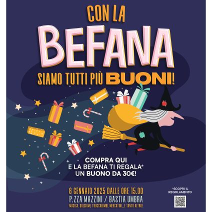 0 Bastia, BASTIA NEWS, Bastia Umbra, Eventi Confcommercio Bastia: in Piazza Mazzini arriva la Befana tra dolcezza, musica e premi per lo shopping locale