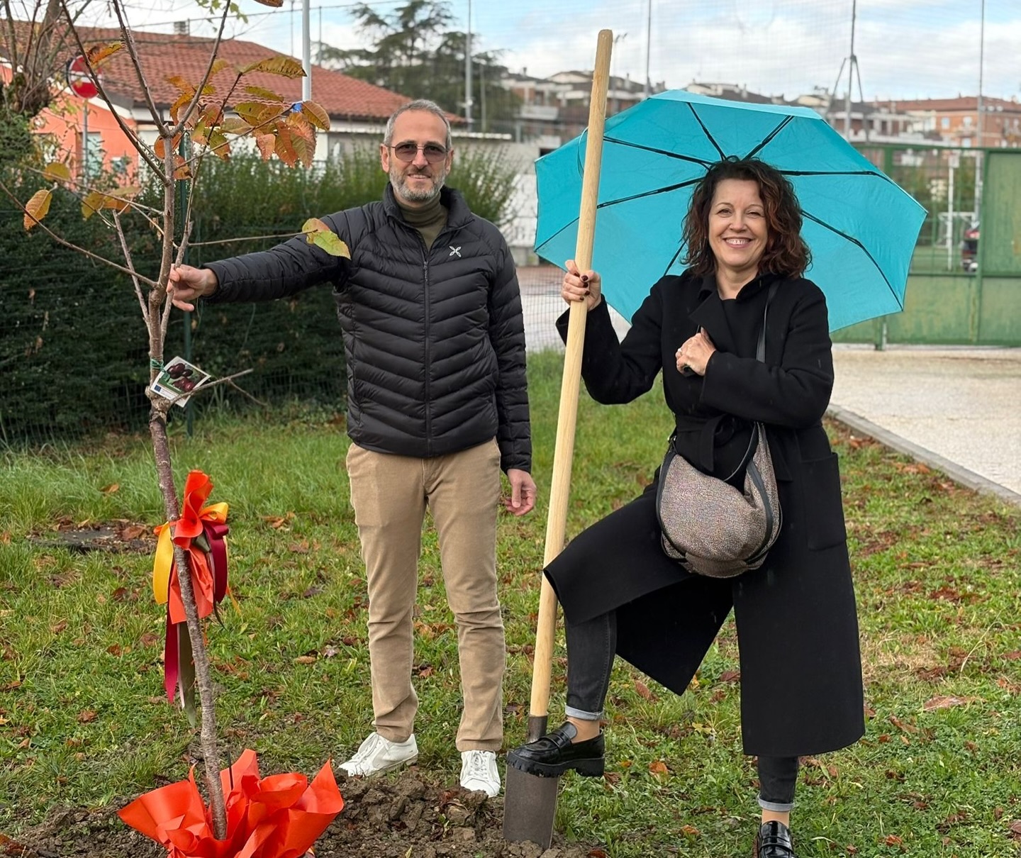 BASTIA UMBRA – Ieri, in occasione della Giornata dell’Albero, nel giardino della Scuola Primaria «Umberto Fifi», l’assessore ai lavori pubblici Marcello Rosignoli, insieme alla dirigente scolastica Stefania Finauro e agli alunni e alle alunne, ha messo a dimora un nuovo albero di ciliegio. Un gesto semplice ma ricco di significato, nato da una donazione delle famiglie e degli studenti delle classi prime, che hanno scelto di contribuire in modo concreto alla cura del proprio ambiente scolastico e alla crescita di un simbolo di vita e futuro. La Giornata dell’Albero, appuntamento dedicato alla tutela dell’ambiente, alla cultura del verde e all’educazione delle giovani generazioni al rispetto della natura, ricorda l’importanza degli alberi per la salute delle persone e del pianeta: producono ossigeno, migliorano la qualità dell’aria, favoriscono la biodiversità e rendono le nostre città più vivibili e belle.