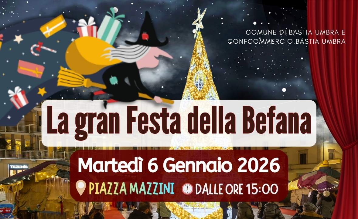 Per l’occasione la ConfCommercio di Bastia, in collaborazione con l’Amministrazione comunale, ha organizzato l’evento “Con la Befana siamo tutti più buoni” nato con l’intento di promuovere gli acquisti nei negozi della città attraverso il concorso omonimo. Saranno distribuiti ai vincitori i buoni acquisto messi in palio tra gli acquirenti dei negozi che hanno aderito all’iniziativa.