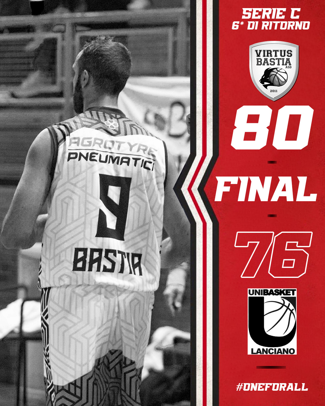 OTTICA BRUNOZZI V. BASTIA 80 UNIBASKET LANCIANO 76