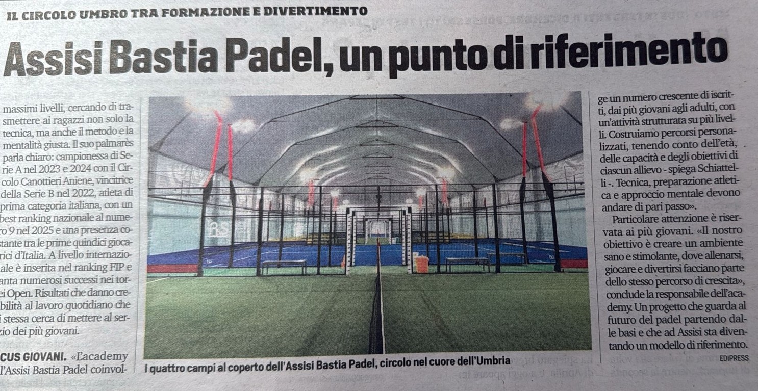 “Vedere l’Assisi-Bastia Padel tra le pagine del Corriere è la conferma che la scelta di puntare tutto su Bastia Umbra, in Viale Giontella, è stata vincente. Siamo una realtà che cresce e che ora tutto il Paese guarda con interesse.”