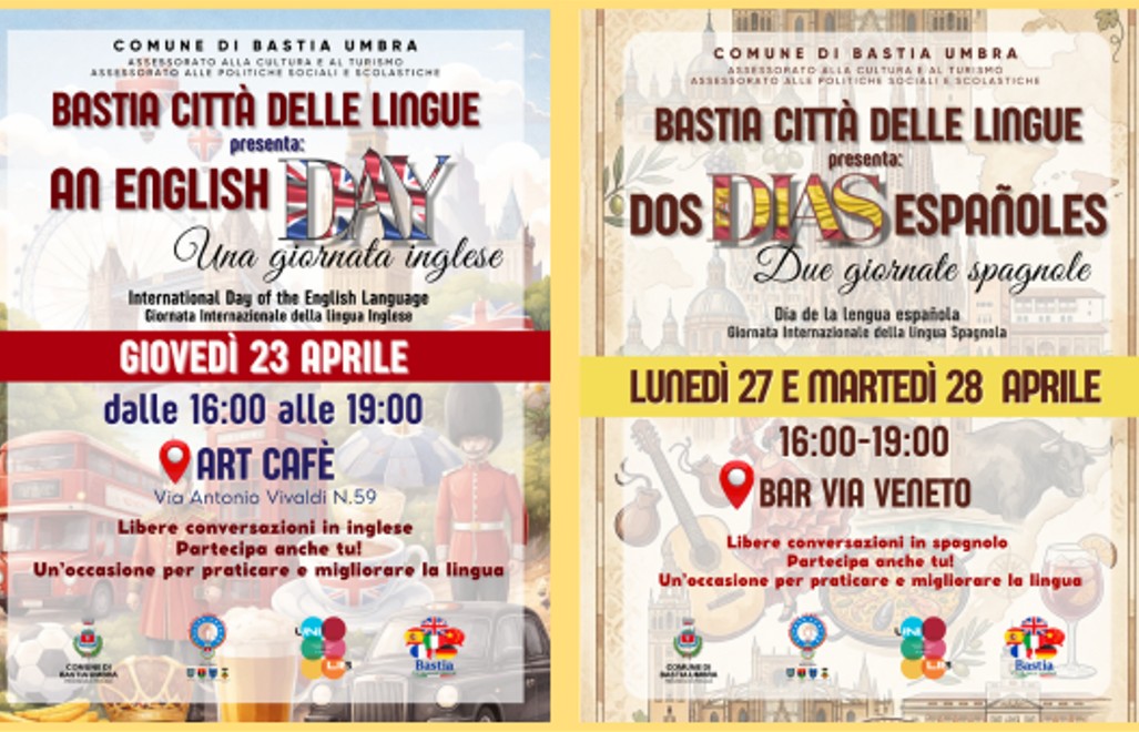 BASTIA UMBRA Prosegue il percorso del progetto Bastia Città delle lingue, promosso dal Comune con l’obiettivo di valorizzare il dialogo interculturale e favorire la diffusione e la pratica delle lingue straniere all’interno della comunità. L’iniziativa, promossa dagli assessorati alle Politiche scolastiche e alla cultura, in collaborazione con UniLibera e con l’Associazione Gemellaggi, prosegue con due nuovi appuntamenti aperti a tutti, pensati come occasioni informali di incontro e conversazione. Il primo appuntamento sarà “An English Day”, in programma giovedì dalle 16 alle 19 presso Art Cafè (via Antonio Vivaldi 59). Un pomeriggio dedicato alla lingua inglese, durante il quale sarà possibile partecipare a libere conversazioni, confrontarsi e migliorare le proprie competenze linguistiche in un contesto accogliente e stimolante. Gli incontri sono aperti a tutti, senza necessità di iscrizione, e rappresentano un’occasione concreta per avvicinarsi alle lingue straniere o per mettersi alla prova in modo semplice e partecipato. Un invito rivolto a cittadini di tutte le età: studenti, lavoratori e appassionati, per vivere insieme momenti di condivisione, apprendimento e incontro tra culture.