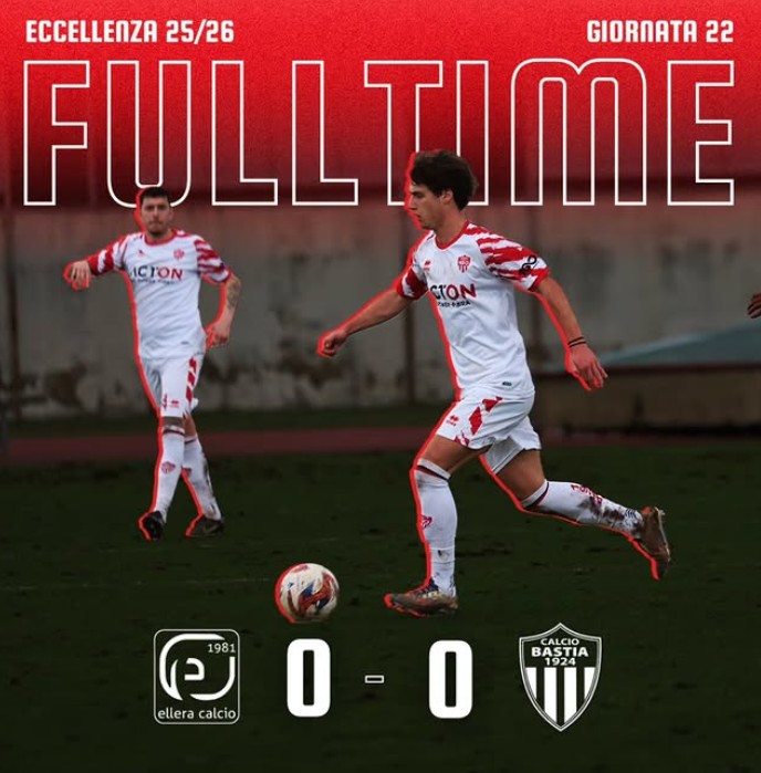 Grilli dall’altra. Un pari che lascia l’Ellera in zona playout e tiene fuori il Bastia. Ellera pericoloso con Paradisi. Il Bastia resta in 10 per il rosso a Tondini.
