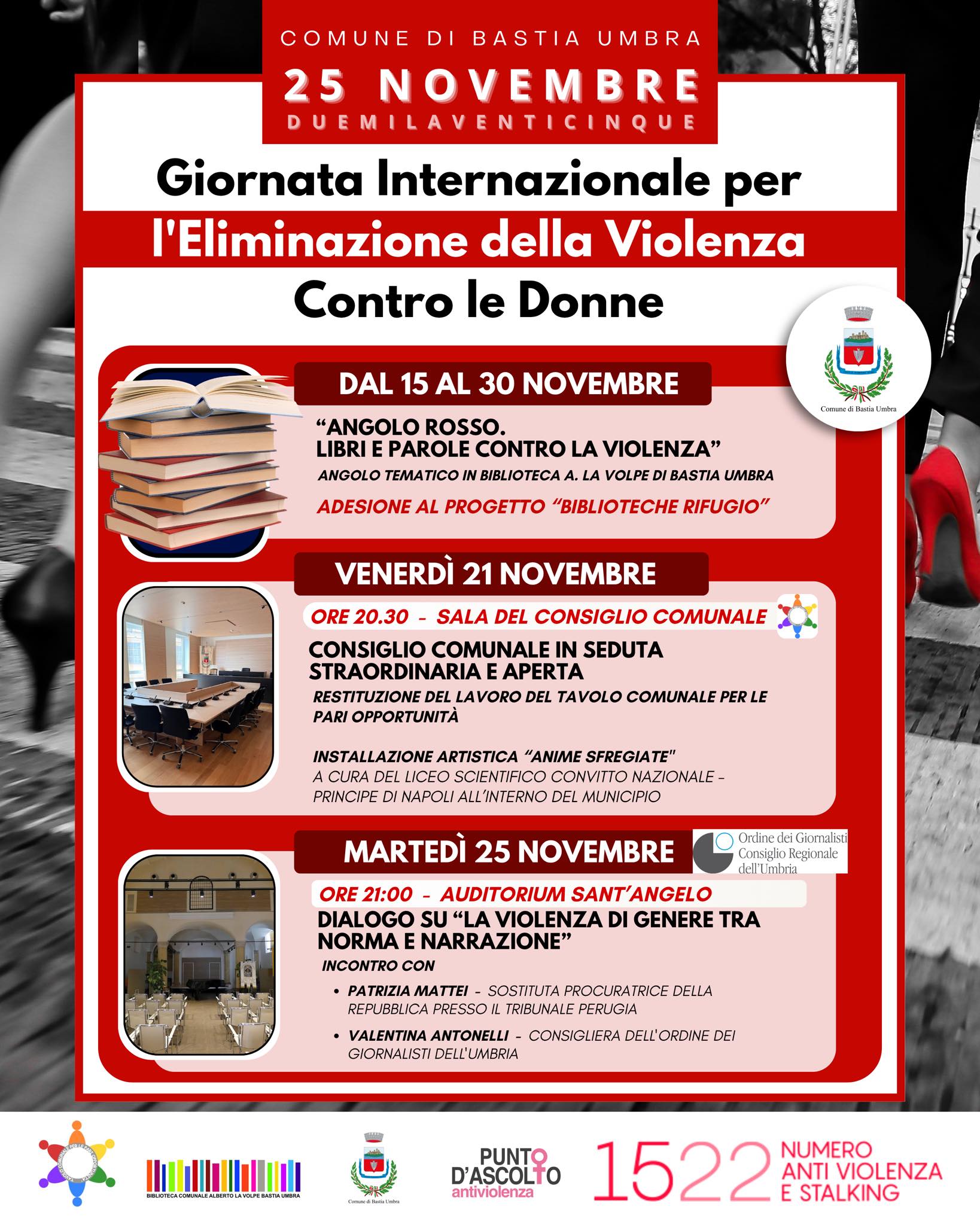 Il Comune di Bastia Umbra rinnova anche per il 2025 il proprio impegno nella prevenzione e nel contrasto alla violenza di genere, in occasione della Giornata internazionale per l’eliminazione della violenza contro le donne che ricorre il 25 novembre.