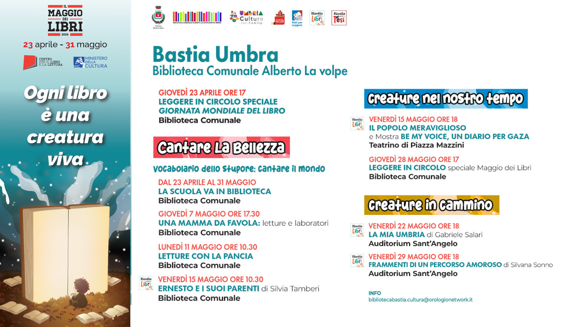 BASTIA UMBRA – In occasione della Giornata mondiale Unesco del libro e del diritto d’autore, ha preso il via a Bastia Umbra l’edizione 2026 del Maggio dei Libri, promossa dal Comune e dalla Biblioteca Comunale Alberto La Volpe.