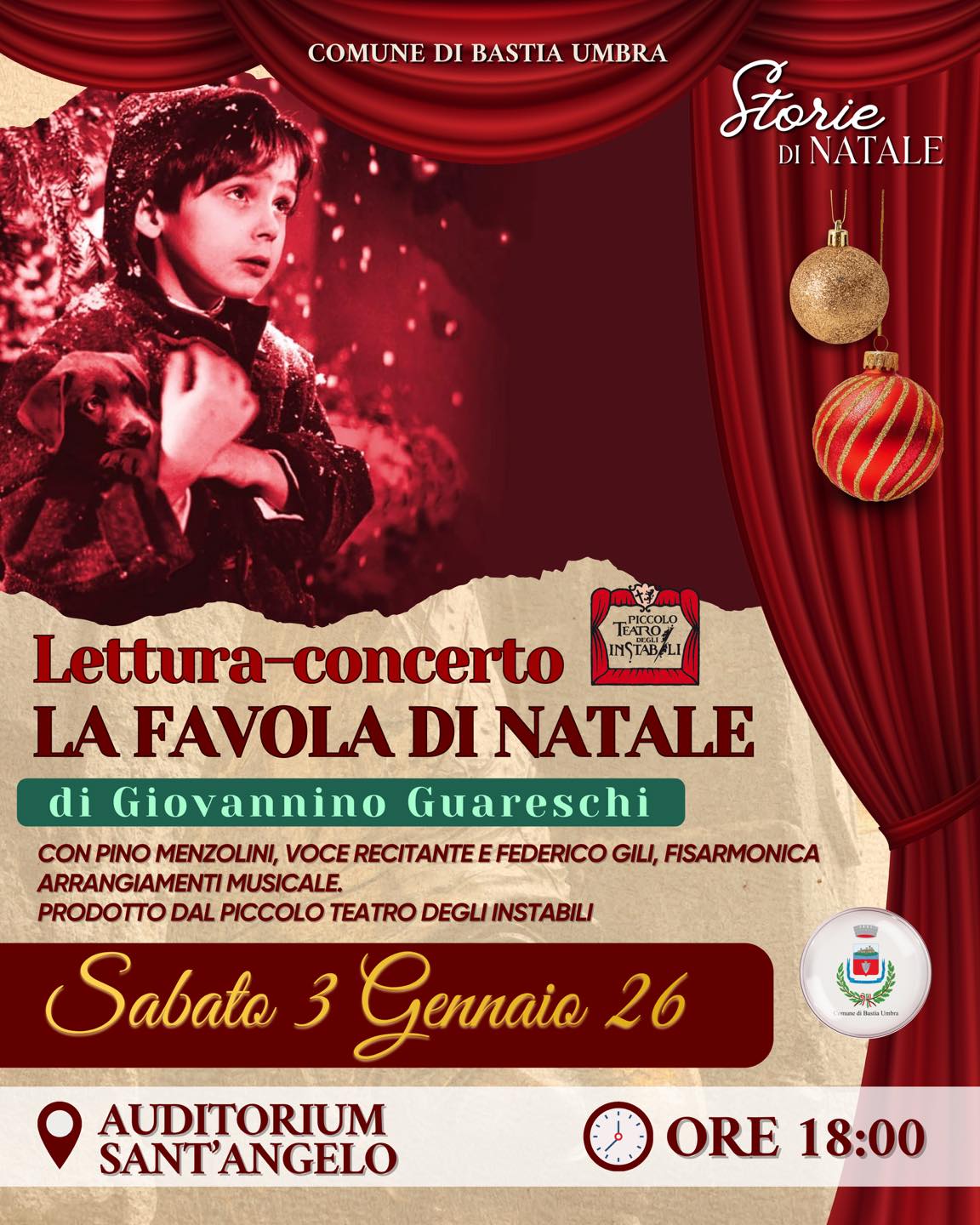 BASTIA UMBRA – “Le Storie di Natale“, che caratterizzano questo periodo, rendono omaggio a Giovanni Guareschi. Oggi, 3 gennaio, alle 18, nell’auditorium sant’Angelo andrà in scena la lettura- concerto “La Favola di Natale“ di Guareschi. Ne saranno interpreti Pino Menzolini, voce recitante e Federico Gili, fisarmonica e arrangiamenti musicali, per una produzione del Piccolo Teatro degli Instabili. Una storia intensa: Albertino, la nonna, il cane Flick e una lucciola intraprendono un viaggio carico di sogni e speranza verso un padre lontano, prigioniero di guerra. Una favola che nasce nella baracca di un lager nella notte di Natale e che riporta uomini privati della libertà a un mondo fatto di bambini, sogni, speranze. Un racconto che è insieme favola e denuncia: Guareschi alterna malinconia, umorismo e satira, trasformando il dolore in un potente messaggio umano e sociale.
