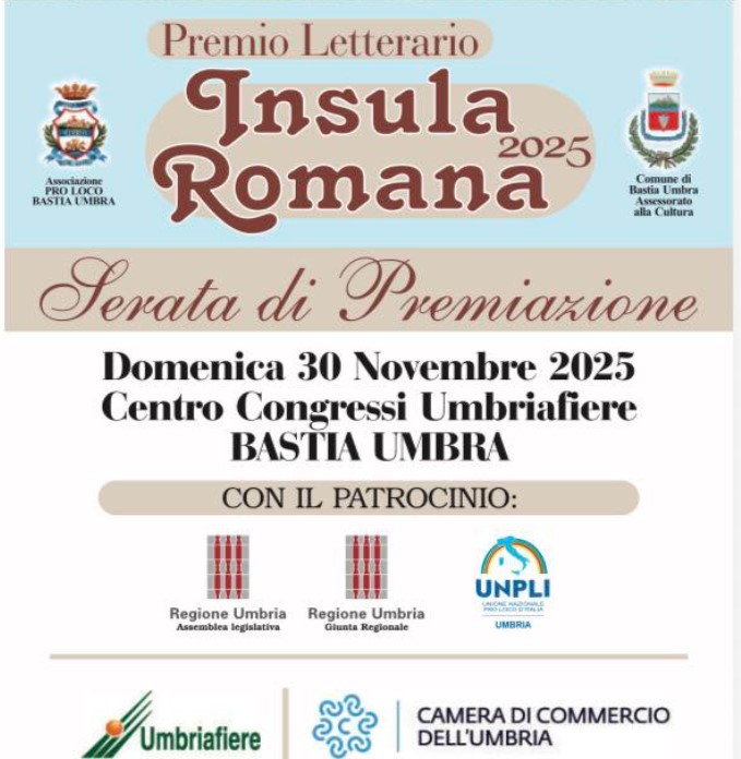 Si terrà domenica 30 novembre 2025 alle ore 17 presso la Sala Congressi del Centro Umbriafiere Maschiella la serata finale di Premiazione delle varie sezioni che compongono il Premio Insula Romana, giunto ormai alla 48° edizione.