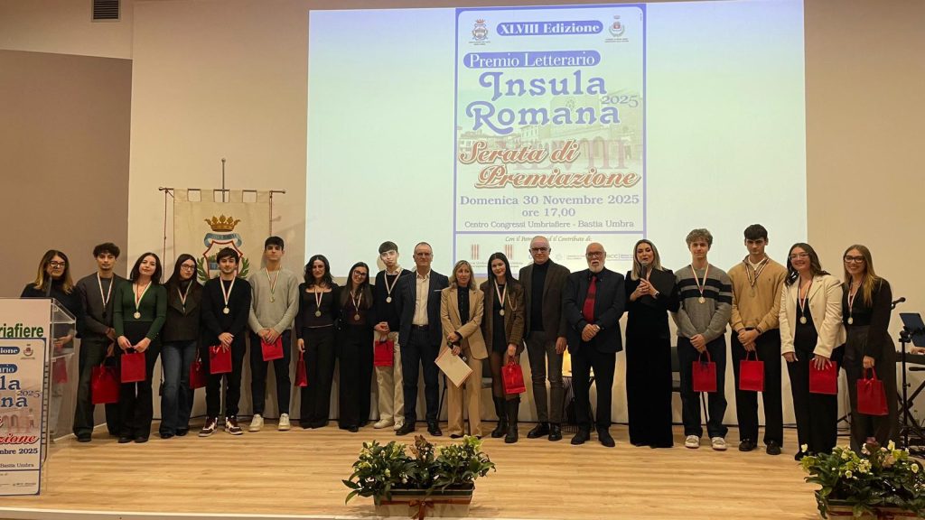 BASTIA UMBRA Si è svolta domenica 30 novembre 2025 presso il Centro Congressi di Umbriafiere la serata finale di premiazione del PREMIO INSULA ROMANA, giunto ormai alla 48° edizione.