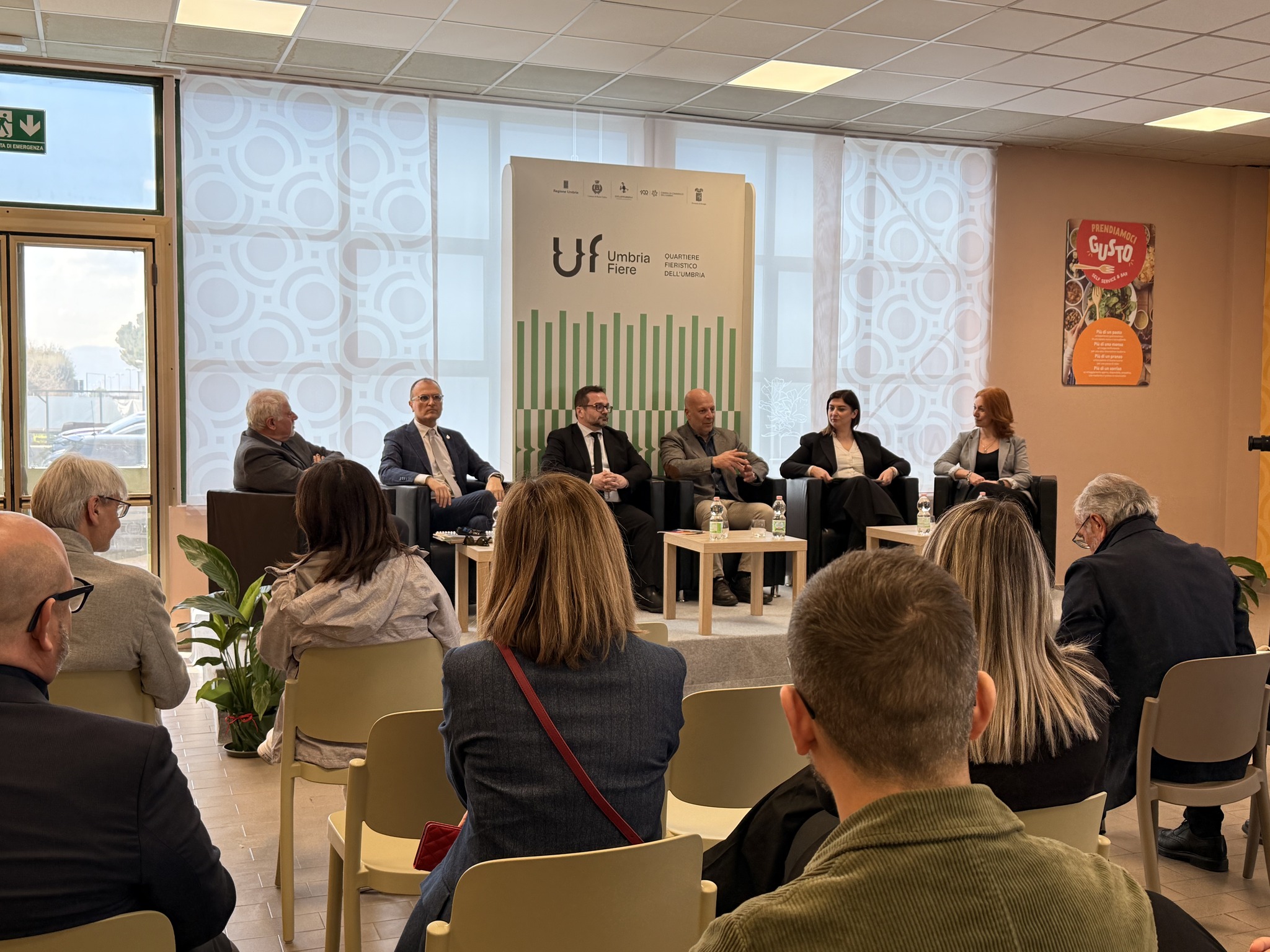 BASTIA UMBRA – Un importante tassello nel percorso di rilancio e riqualificazione di Umbria fiere: inaugurato il nuovo ristorante self service e bar ‘Prendiamoci Gusto’ che torna a far vivere uno spazio storico del quartiere fieristico. Durante ‘Dalla visione all’azione’, ieri, è stato aperto il nuovo locale, affidato in concessione dal Comune di Bastia Umbra a Camst group, azienda tra le principali realtà nell’ambito della ristorazione collettiva e commerciale in Italia. Intervenuti Antonio Forini, presidente Umbriafiere Spa, Erigo Pecci, sindaco di Bastia Umbra, Mattia Grillini, vicepresidente di Camst, Valter Venturi, presidente del Banco Alimentare dell’Umbria, Valentina Falconi, area manager di Synergie Spa, e Letizia Michelini, presidente II Commissione consiliare della Regione Umbria. Presentati anche i partner di Umbria Fiere: Synergie Spa, agenzia per il lavoro tra i principali operatori europei nel settore della somministrazione e gestione delle risorse umane, e Banco Alimentare dell’Umbria, organizzazione no profit. «Partnership – dice il presidente Forini – che rappresentano un tassello fondamentale del percorso di crescita e rinnovamento che Umbria Fiere sta portando avanti».