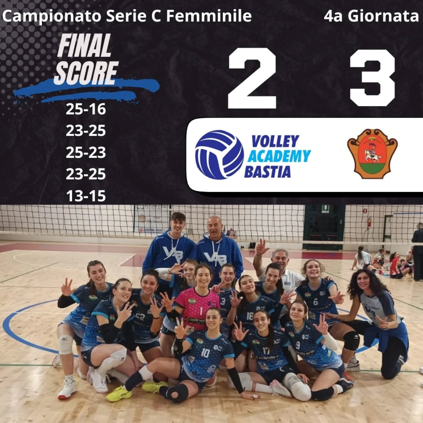 Nella quarta giornata del campionato di serie C femminile di pallavolo il Volley Academy Bastia viene superato dal Volley San Gemini per 2-3 con i seguenti parziali: 25-16., 23-25, 25-23, 23-25, 13-15.